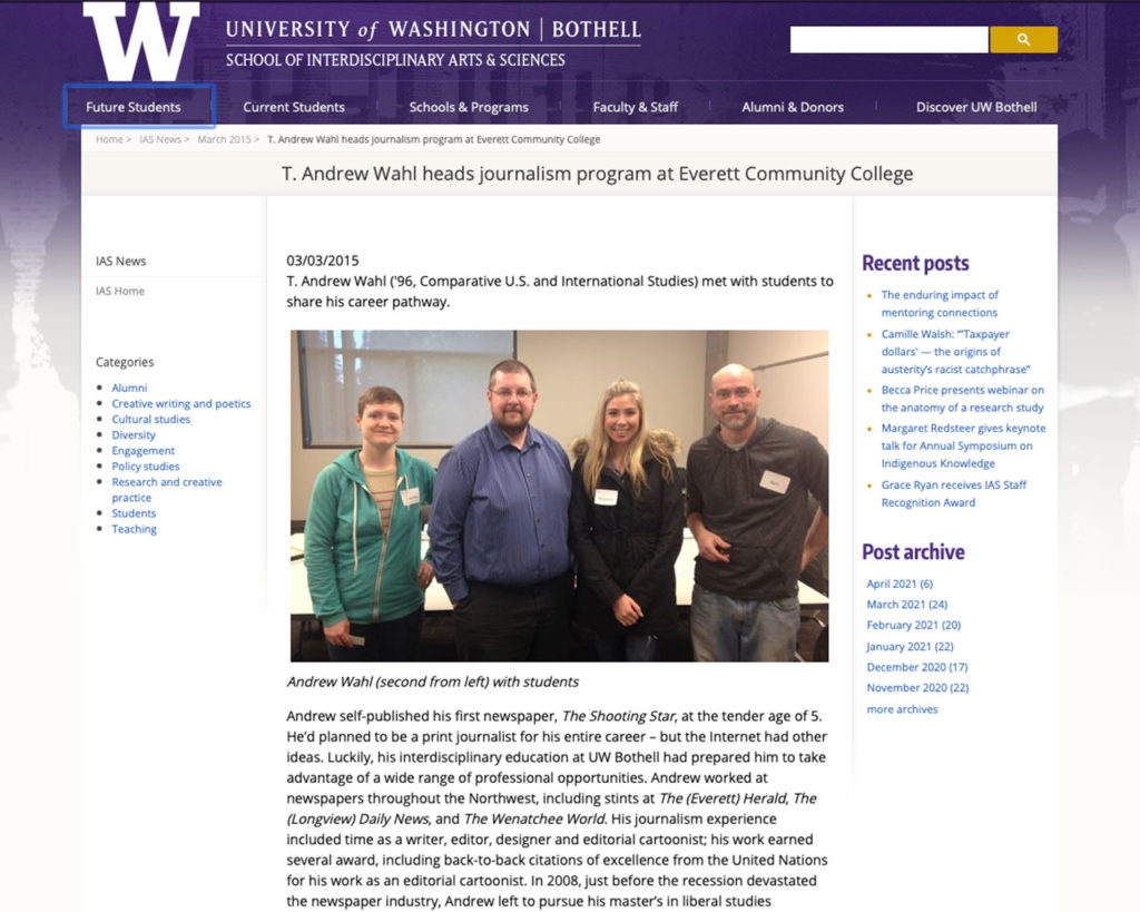 READT. Andrew Wahl is named Journalism Educator of the Year for his work at Everett Community College. [From the Society of Professional Journalists - Western Washington Chapter]