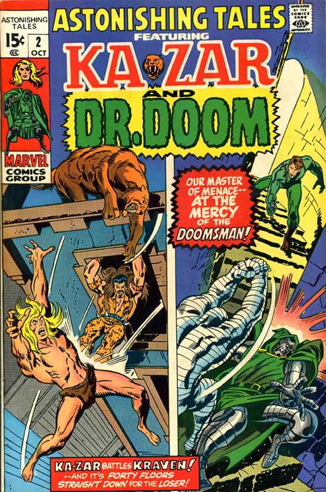 Review: For one of its first titles of the Bronze era, Marvel turns to the quintessential artist of the Silver Age. Jack Kirby’s work on this Ka-Zar feature is fantastic. The story by Roy Thomas is pretty good, too, with a brisk pace that’s a nice fit for the split-book format.
