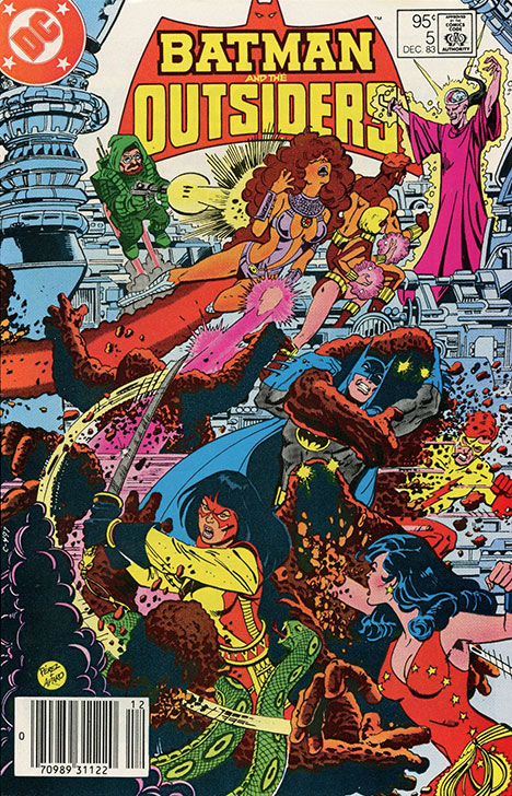 Review: Picking up immediately after the final panel of The New Teen Titans #37 (see review), this two-part crossover’s conclusion is solid-but-unspectacular superhero fare. Unsurprisingly, Mike W. Barr’s character work is better with the Outsiders than the Titans, but both squads acquit themselves fine. Robin’s efforts to shed his “teen wonder” relationship with Batman skew overdramatic, and it’s good to see that character arc take a step forward on the final page. Artist Jim Aparo’s work is similarly middle of the road; he still delivers the occasionally striking figure or face but, overall, his work has drifted a bit too cartoony.