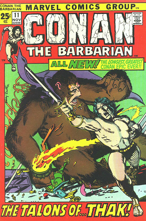 Notable: Double-sized issue. … Adapts Robert E. Howard’s “Rogues in the House.” … The “The Hyborian Page” letters page includes an LoCs from legendary fan cartoonist Fred Hembeck and future comics writer Tom Peyer.