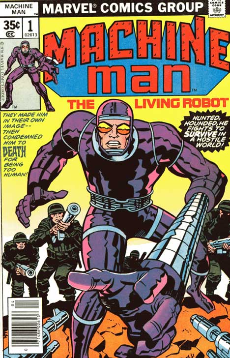 Second opinion: “It certainly seems to me that had Machine Man appeared in 1963 it would still be around today and it would probably be widely followed … . As a 1978-born comic, though, it has its problems.” – Mike Tiefenbacher, The Comic Reader #176, January 1980. … “Kirby’s art has become a constant act of self-plagiarism.” – Kim Thompson, The Comics Journal #39, April 1978 … “As is usual with much of Kirby’s later work for Marvel, the character was a good idea, but suffered from pedestrian treatment.” – David W. Cutler, FantaCo’s Chronicle’s Series Annual #1, 1983