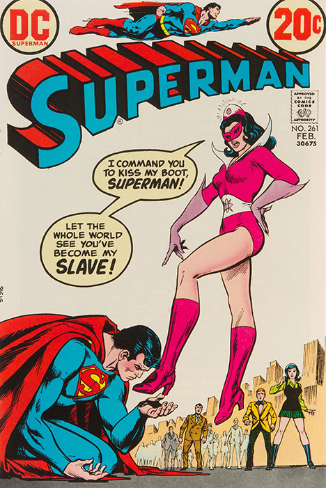 Review: For a comic-book series supposedly written for a younger audience, it’s surprising how often Superman seems to cross over into kink. This issue doesn’t even attempt to hide its fetishistic tendencies with its straight-up BDSM cover. Cary Bates’ story doesn’t make much sense, but that’s OK: It’s all an excuse to have Green Lantern’s girlfriend take Superman as her slave, and for Lois Lane to dress up in identical cosplay to fight for control of her man. It’d be easy to say “you can’t make this stuff up,” but, well, here it is.