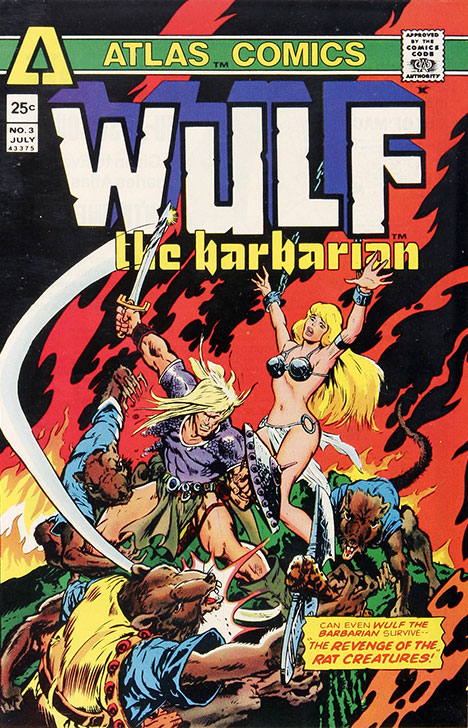 Review: Following a pair of issues that were clearly Larry Hama passion projects (see reviews of Wulf the Barbarian #1 and #2), this series falls prey to the Atlas’ third-issue shuffle. That said, former pulp artist Leo Summers steps in admirably. While the art is a little rough, his plot about a hyper-industrial citadel turned secret, socialist paradise offers a fresh twist to typical fantasy locales. More importantly, Wulf continues to be less misogynistic than many barbarian books of the era (including Atlas stablemate Ironjaw, a particularly egregious example [see reviews].) A step down from earlier outings, but still a keeper.