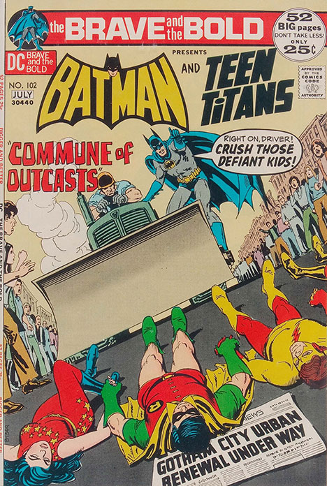 READNeeding help infiltrating a gang of criminal runaways, Batman asks Robin to call the Teen Titans back together. Typically goofy B&B fun from Bob Haney, with typically excellent B&B art from Jim Aparo.