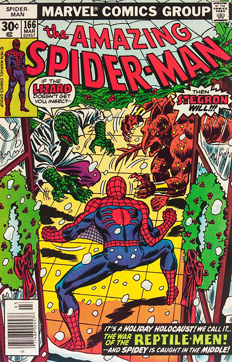 READSpider-Man feels a little Christmas cheer, despite being stuck in battle with the Lizard and Stegron, the Dinosaur Man. Standard mid-Bronze-Age Spidey fair from the team of Len Wein, Ross Andru and Mike Esposito.