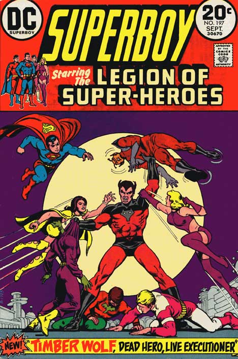 READThe Fatal Five concoct a time-travel scheme to wipe out the Legion by neutralizing Superboy in the 20th century. The Legionnaires stretch out to fill this whole issue, their second as Superboy’s cover co-stars. Writer Cary Bates and artist Dave Cockrum again do the honors.