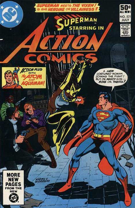 The DC Implosion couldn’t keep a good superheroine down. Gerry Conway’s Vixen finally earns her DCU debut, teaming here with Superman in a story drawn by Curt Swan and Frank Chiaramonte.