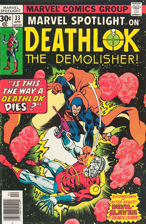 When Godwulf transports Deathlok back in time, the cyborg soldier finds himself clashing with Devil-Slayer and battling demons. A confusing hodgepodge of an issue from David Anthony Kraft, Rich Buckler and friends.