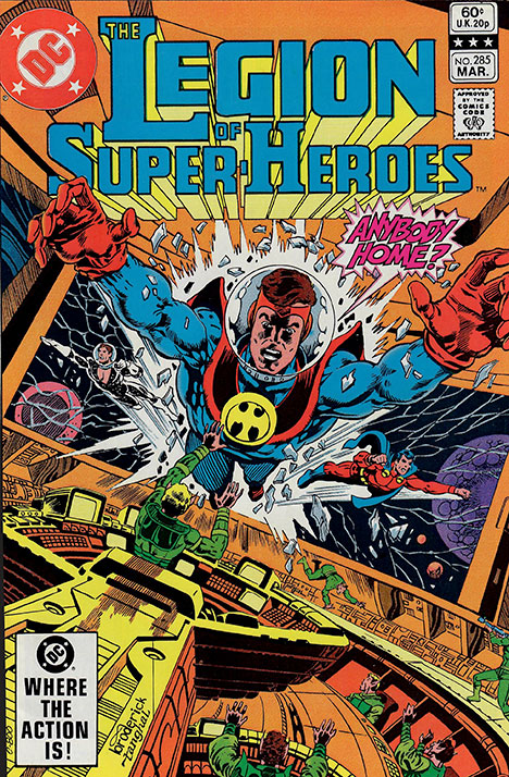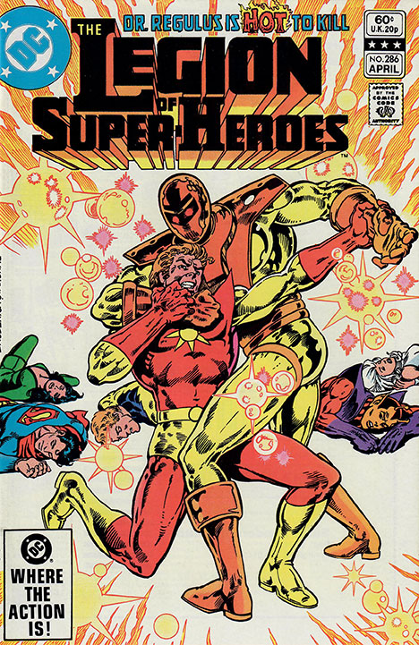 READLegionnaires vacationing on Brande’s World come under attack from Dr. Regulus, who seeks his revenge on Sun Boy! Another solid outing from the team of Paul Levitz and Pat Broderick, and another promising backup featuring art by Keith Giffen.