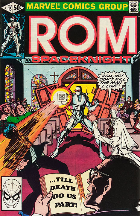 READRom battles Rom – plus the Angel Elite and spaceknights galore – with the future of Galador at stake. The greatest of the spaceknights returns home in this tale from Bill Mantlo, Sal Buscema and Joe Sinnott.