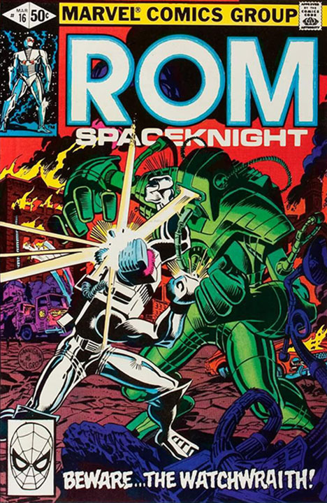 READRom and new ally Torpedo team to defend Clairton from Dire Wraiths who’ve been armed with powerful rocket suits. Another professional installment of the Rom story from the team of Bill Mantlo, Sal Buscema and Joe Sinnott.