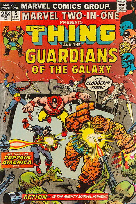 READIn 3014 A.D., the Thing and Captain America team with the Guardians of the Galaxy to liberate the Earth. A rushed conclusion to a two-part tale by Steve Gerber and Sal Buscema.