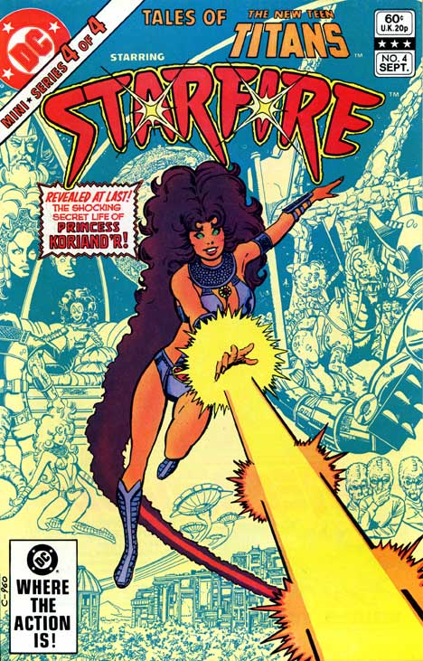 On a camping trip with the other Titans, Koriand’r reveals the secrets of her traumatic, alien past. Marv Wolfman and George Pérez do a great job developing a character who is equal parts lover and warrior.